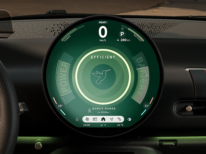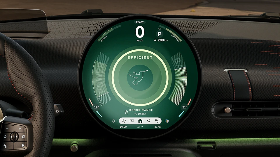 Tiesiog paprašykite MINI: „Hey MINI, įjunk Experience Efficient režimą.“ „Hey MINI, kiek galiu nuvažiuoti?“
