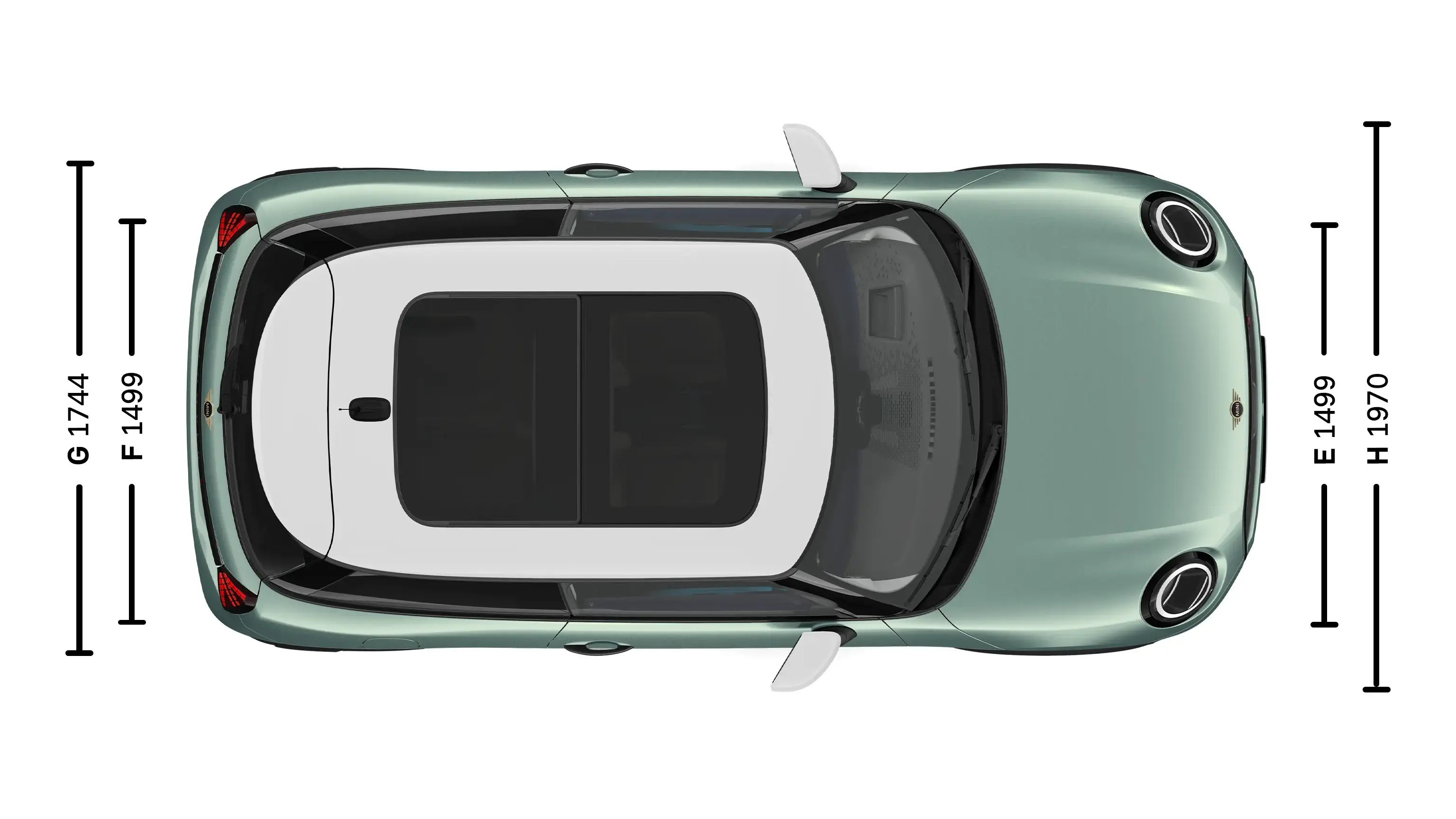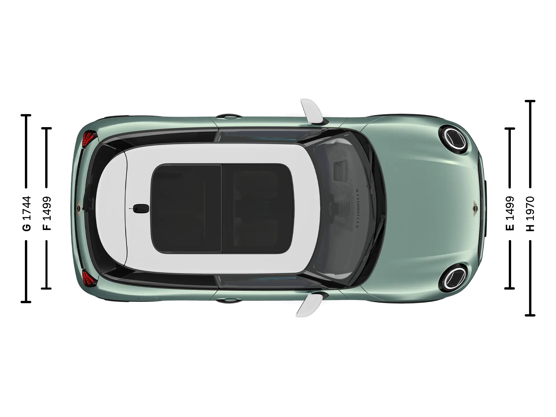 | (H) Automobilio plotis su šoniniais veidrodėliais | 1 970 mm |