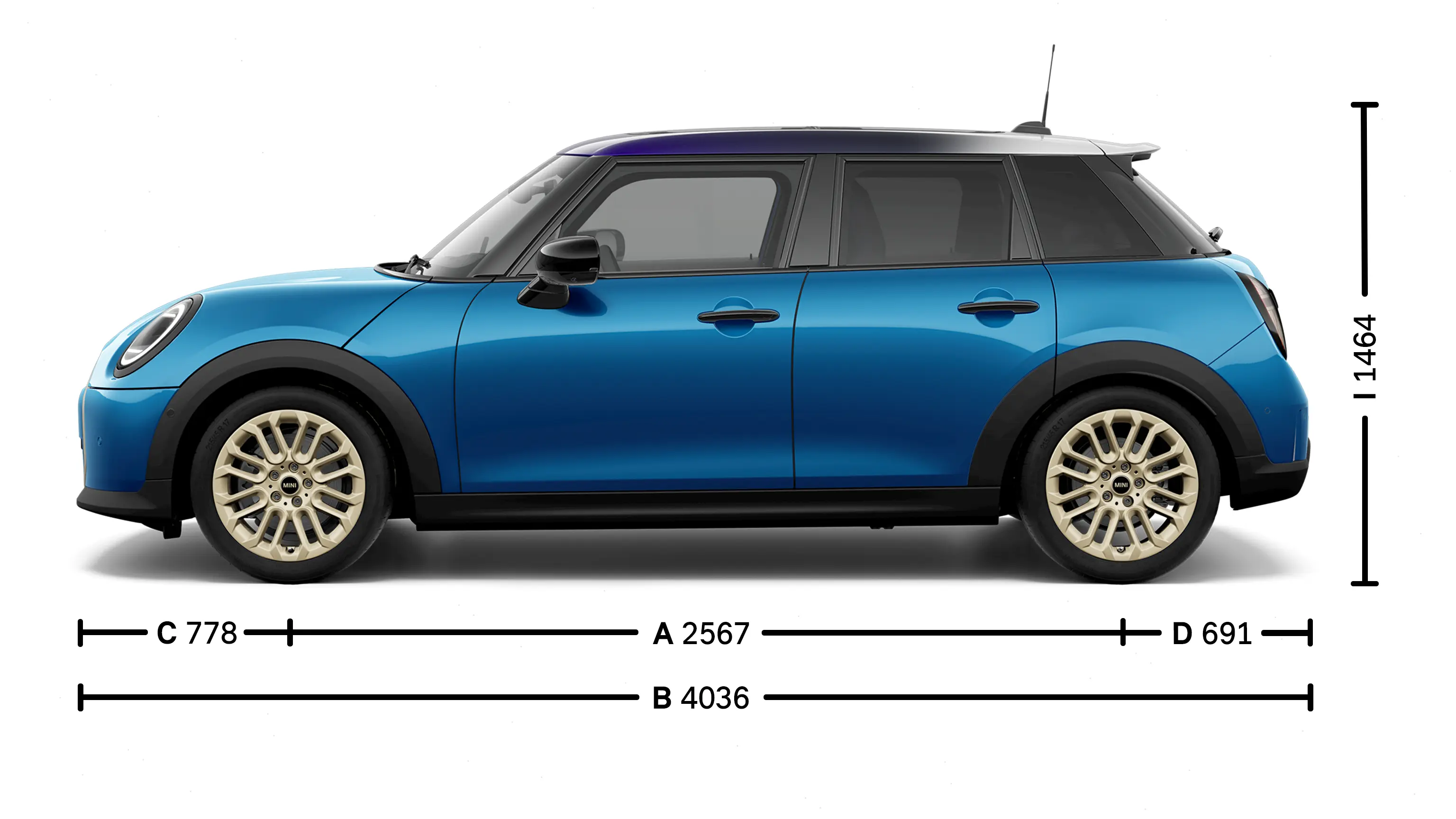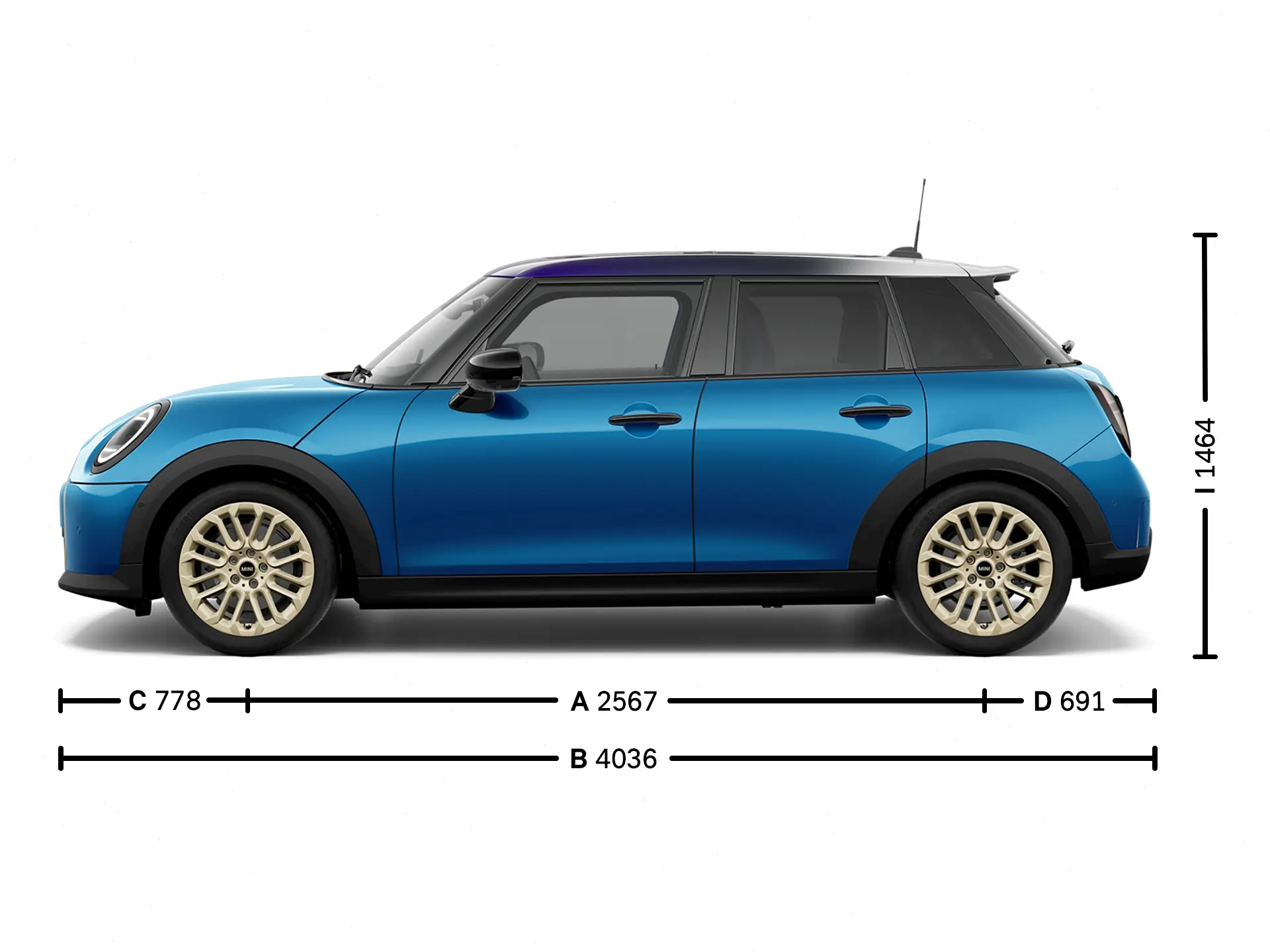 (I) Automobilio aukštis (su standartiškai sumontuotomis dalimis) |