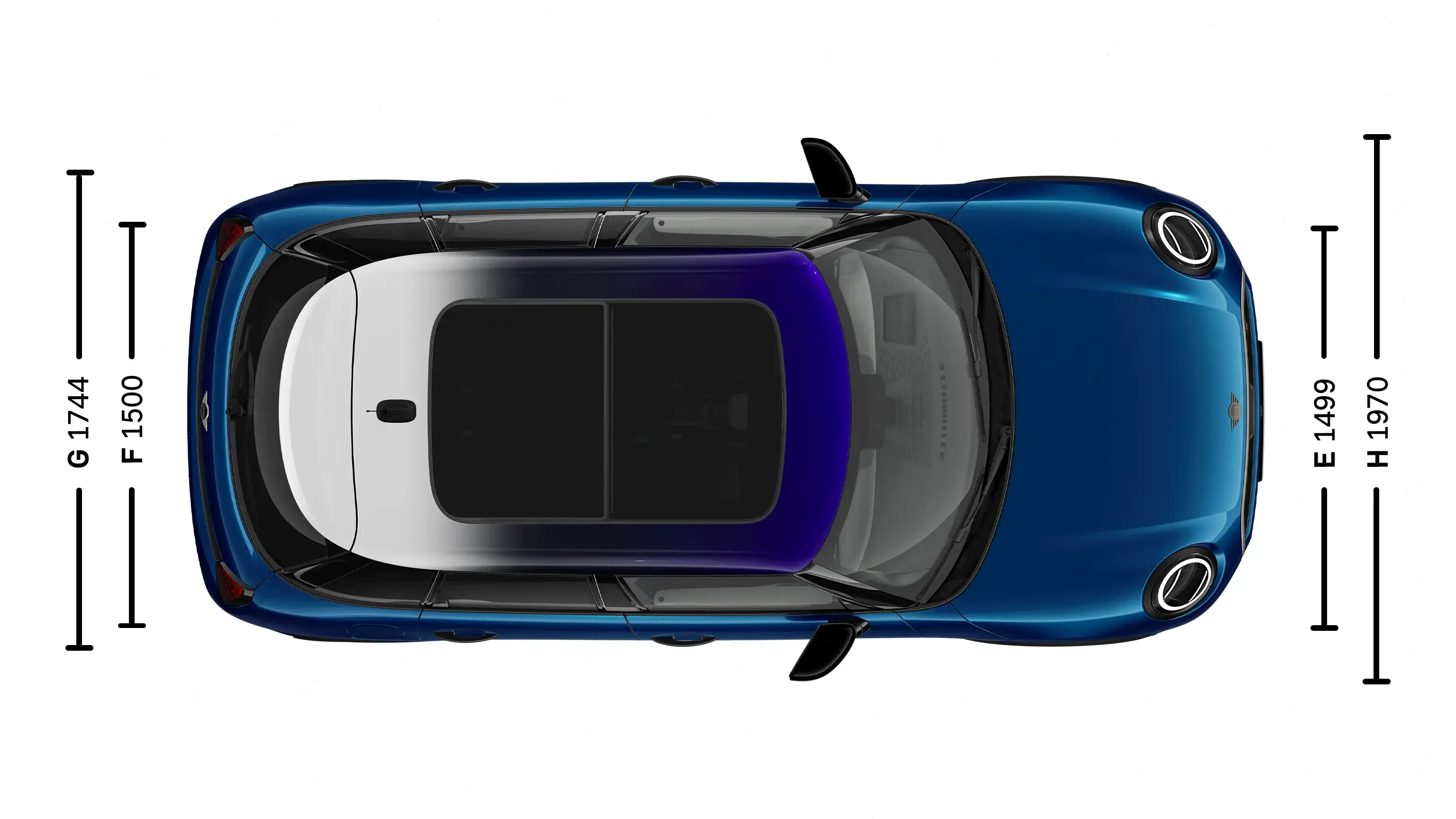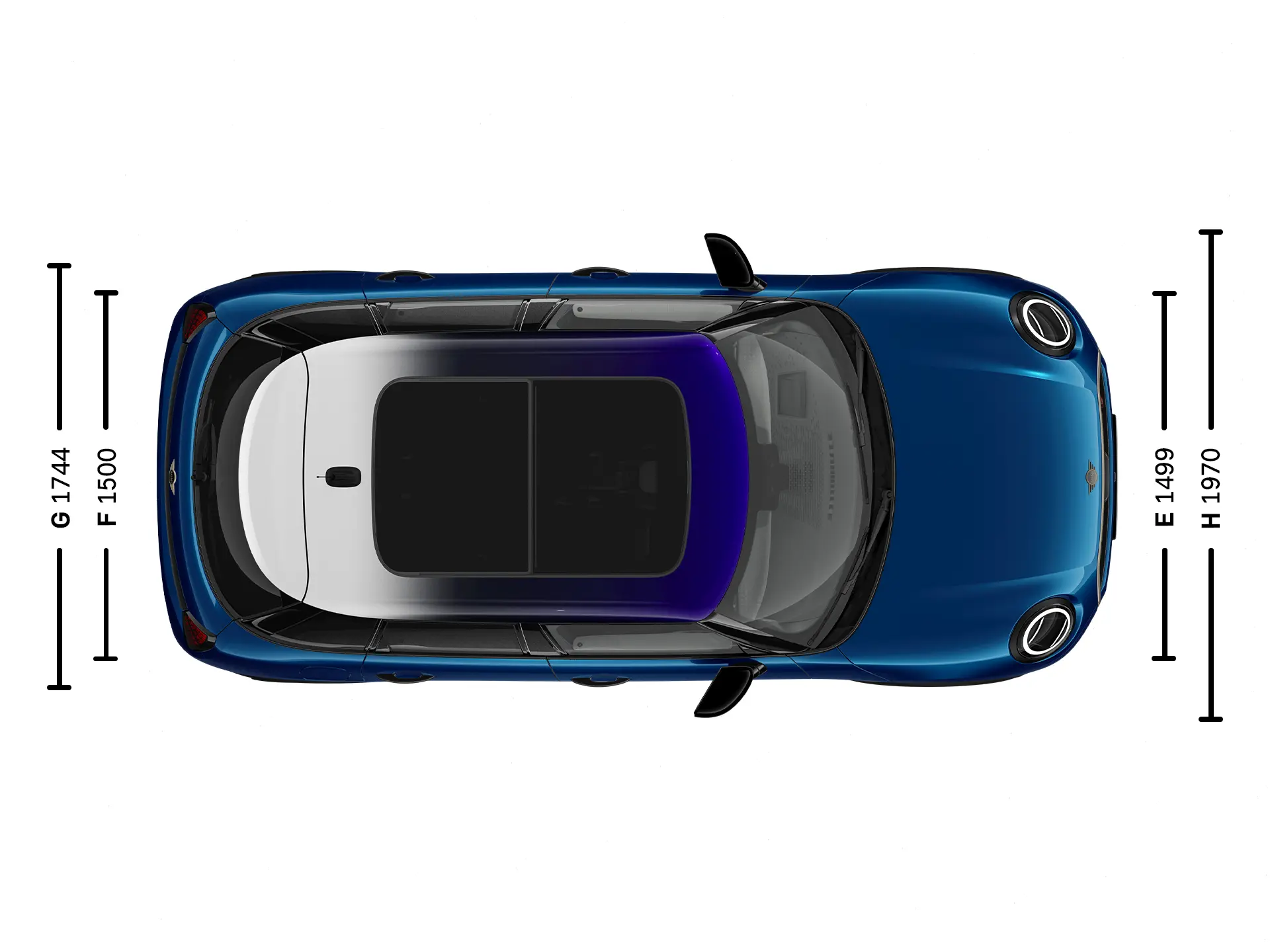 | (H) Automobilio plotis su šoniniais veidrodėliais | 1 970 mm |