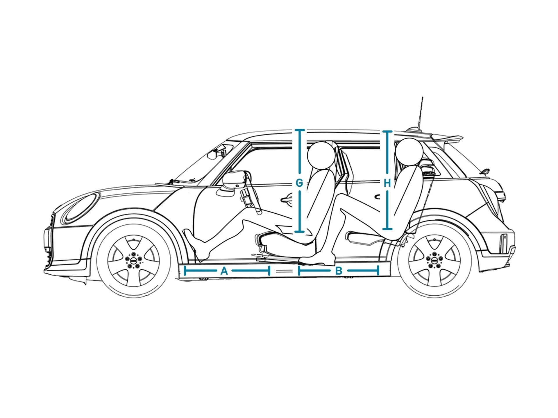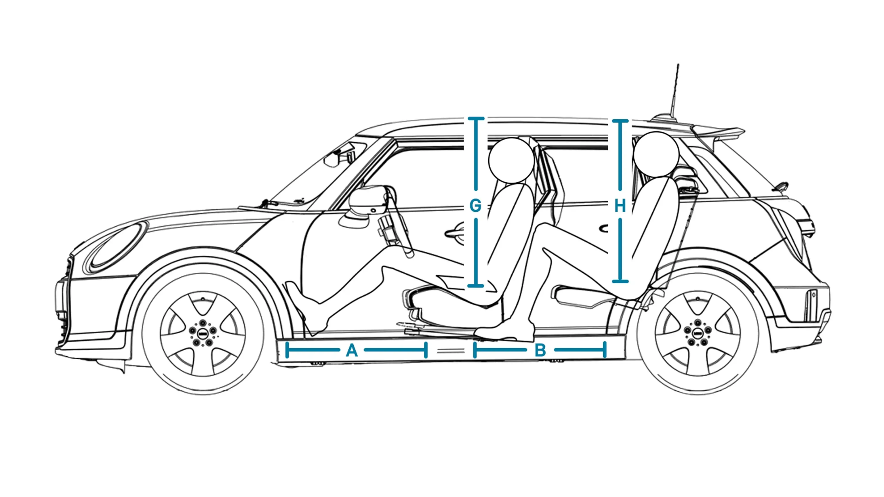 | (H) Erdvė galvai su panoraminiu stikliniu stogu sėdint gale | 920 mm |